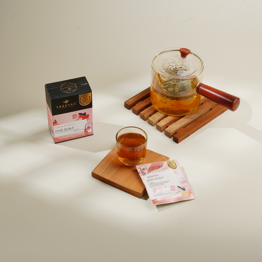 A tea for a soothing blend crafted to alleviate symptoms associated with premenstrual syndrome (PMS)